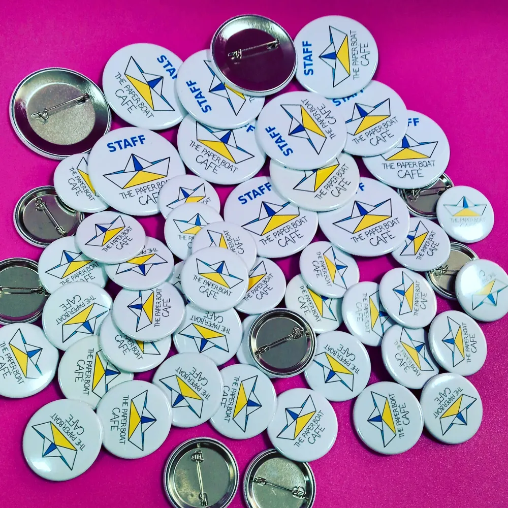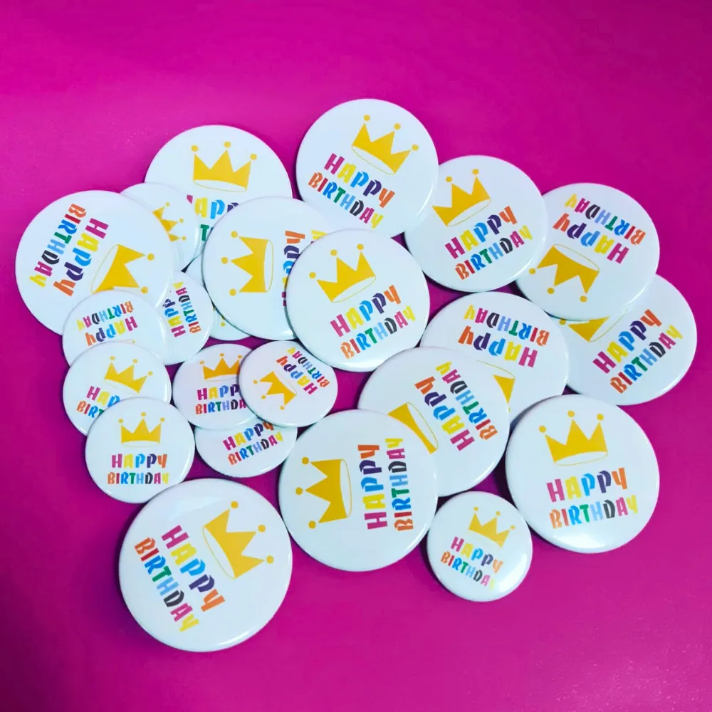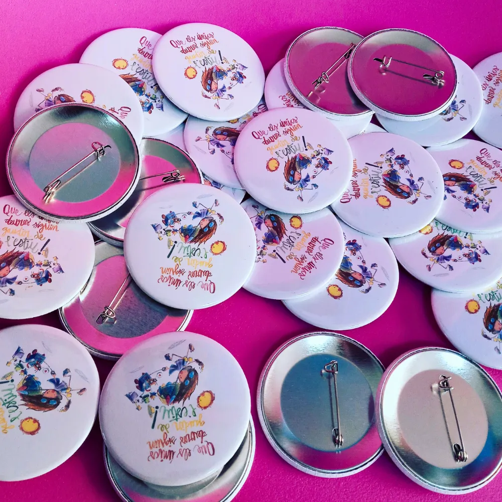 Redondas o cuadradas, con clip o imán. Ideales para campañas y eventos.